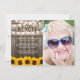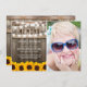 Envoyer une note de remerciement funéraire est une façon simple de remercier ceux qui vous ont montré du réconfort pendant votre deuil. Cette carte de sympathie au chic pays comprend un arrière - plan en bois rustique, une photo de la personne décédée, des tournesols jaunes vifs, des lampes à cordes, le dicton "In Loving Memory", leur nom, les dates de naissance et de mort, et une note de remerciement personnalisée.