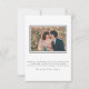 Ce carte de remerciements photo mariage en or est un excellent moyen de faire connaître à vos amis et votre famille combien vous les appréciez. L'avant de la carte est conçu pour présenter votre photo d'orientation verticale préférée, avec les mots "merci" en haut dans un joli type de script de superposition de feuille d'or mat, et vos noms, date mariage et emplacement en bas. Le dos de la carte vous permet de taper un message d'accueil personnel, et dispose également d'une photo encadrée d'orientation horizontale/paysage. Il s'agit d'un design modèle, et il est très facile de customiser pour répondre à vos besoins. Copyright Anastasia Designs, tous droits réservés.