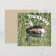 Cette carte d'appréciation unique présente une petite graisse mignonne flottant sur l'eau calme. Les plumes du dos moelleux de cet animal se détachent de la surface lisse de l'eau. Des herbes vertes et des roseaux ainsi que l'adorable oiseau se reflètent dans l'eau sur cette photo nature. "Merci" est présenté au-dessus du petit oiseau et est courbé le long du coin de cette carte. Customisez facilement si vous le désirez.