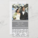 Mariage merci cartes photos en gris et blanc élégant et moderne avec motif vintage doux à fleurs damassé. Une façon parfaite de remercier les amis et la famille pour les cadeaux de mariage et de partager vos photos de mariage. Disponible dans l'affranchissement correspondant, et de nombreux autres produits pour votre mariage.