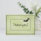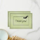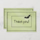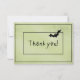Customisez vos vacances Halloween merci cartes avec cet art numérique avec une chauve-souris noire volant dans le coin supérieur droit sur un arrière - plan grunge vert texturé avec des cadres noirs étroits. Les mots, "Merci !" sont au centre avec un modèle texte pour vous permettre de le changer facilement en votre nom, initiale ou monogramme. Une bonne idée pour votre fête d'Halloween. Le dos a le même arrière - plan vert, et est bordé pour une zone d'écriture.