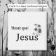 Un design moderne en noir et blanc avec une simple illustration en ligne de tournesols, avec le texte "Merci, Jésus". Typographie de style rétro.