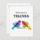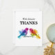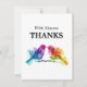 Le Carte de remerciements Mariage de la "Rainbow Lovebirds Collection" offre une façon charmante d'express gratitude à vos invités avec son design captivant et son élégance vibrante. Mesurant 7 x 5 pouces, cette carte à plat présente de délicieuses oeuvres inspirées de la beauté colorée des tourterelles arc-en-ciel, créant un cadre joyeux pour votre message de remerciement. Sur le devant de la carte, la légende "with Sincere Thanks" est élégamment affichée sur un fond de tonalités arc-en-ciel vibrantes, évoquant un sentiment de chaleur et d'appréciation. Le charme ludique des tourterelles arc-en-ciel ajoute une touche d'élégance fantaisiste au design, donnant le ton à votre message sincère. En se tournant vers l'arrière de la carte, contre un arrière - plan blanc immaculé, il y a suffisamment d'espace pour votre message personnalisé. Ici, vous pouvez transmettre votre gratitude avec un texte personnalisable, en ajoutant une touche personnelle à chaque carte. Inclure le nom du couple, la date du mariage et l'emplacement pour rendre le message plus significatif et mémorable pour vos invités. Ce Carte de remerciements Mariage est un ajout judicieux à la collection "Rainbow Lovebirds", qui offre une gamme d'options de papeterie coordonnée pour améliorer votre célébration mariage. Des invitations aux cartes et bien plus encore, chaque pièce de cette collection complète le thème de l'amour vibrant et de l'inclusion, assurant une présentation cohésive et visuellement étonnante pour votre journée spéciale. Appréciez la joie et la beauté de votre mariage avec cette expression sincère de gratitude.