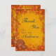 Jaune festif, rouge, marron et orangé thème automne design carte de remerciements mariage avec des feuilles et des bordures de vigne de couleur automne décoratives avec un groupe de citrouilles dans le coin inférieur. L'arrière - plan a une belle fausse texture pour un vieux look de papier. Cette conception s'applique également à de nombreux autres produits papier pour répondre à tous vos besoins en mariage. Suivez le lien ci-dessous.