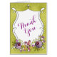 Ce carte de remerciements de mariage floral couleur feuille violet, blanc et vert FAUX a une zone de texte dessinée à la main et fantaisie, en noir, avec des fleurs assorties de couleur d'eau, dans différentes nuances de rose, violet, pêche avec feuilles vert olive et jaune or au fond de l'invitation qui sont également soulignés en noir. Si vous avez besoin d'éléments correspondants dans cette conception, ou si vous avez besoin d'aide pour la customiser avec vos informations, envoyez un courriel à niteowlstudio@gmail.com. ****VEUILLEZ NOTER que tout sera imprimé tel qu'il apparaît sur votre écran.