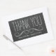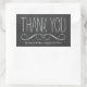 Des autocollants élégants et tendance pour mariage avec un design texte de typographie blanche cool qui dit merci sur un arrière - plan de tableau noir faux. Personnalisez ces jolis étiquettes avec le nom de la mariée et du marié et la date du mariage.