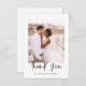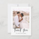 Cartes de Merci mariage qui ont une photo à l'avant et à l'arrière. Les cartes de remerciement contiennent une typographie de script moderne, lettrée à la main, qui sont élégantes, simples et modernes à utiliser après la célébration du mariage.