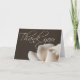 Rose blanche hivernale sur fond chocolat avec "Merci" en écriture. Carte parfaite pour vos mots de remerciement.