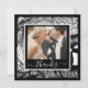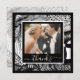Merci avec votre photo d'événement, contre un design moderne moderne et linéaire noir et blanc. L'enchevêtrement Abstrait de ligne noire et blanche est une oeuvre d'art numérique originale. Chaque ligne a une courbe et crée une courbe. Typographie couleur champagne. Back a un carré blanc encadré pour vos mots de remerciement personnalisés, contre une version muette du même art.
