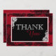 La dentelle noire élégante au-dessus de l'arrière - plan rouge et le blanc lacent au-dessus de l'arrière - plan noir avec le carte de remerciements moderne de goth de contraste de monogramme noir et blanc et de blanc.