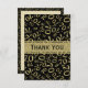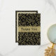 Personnalisez facilement le texte "Merci" sur le devant à l'aide du modèle de texte fourni. Ce design est un motif numérique noir et or avec le numéro 70 répété dans des tailles et des angles variés dans une impression intégrale. Il y a une bande dorée au centre avec un modèle de texte pour faciliter le changement des mots dans votre propre langue, nom, initiale ou monogramme. Le dos est réglé pour votre message manuscrit. Utilisez ce thème de joyeux anniversaire pour dire merci à tout le monde pour célébrer avec vous votre 70e anniversaire "Big 7-0" qui marque le passage à l'âge vénérable. Ce design convient à toutes les occasions ou événements où vous célébrez le numéro 70.
