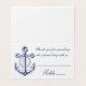 Préparez-vous à naviguer sur la Mer de l'Amour avec nos Cartes de Merci Nautique Mariage Place! Ces cartes sont dotées d'un ancrage bleu marine sophistiqué, ce qui en fait la touche finale parfaite pour votre mariage ou votre fiançoire sur le thème des marins. Ces cartes sont parfaites pour les mariages d'été, capturant l'essence de l'océan, la sérénité de la mer, et l'aventure d'un voyage en voilier. Que vous soyez l’hôte d’une douche nuptiale, d’un dîner de répétition ou du grand jour lui-même, ces cartes guideront vos invités à leurs sièges avec style. Conçues avec amour et attention aux détails, ces cartes sont robustes et enchanteresses. Ils ne sont pas seulement des cartes de lieux - ils sont les gardiens d'une journée mémorable passée à célébrer l'amour et la convivialité. Alors pourquoi attendre ? Ancre votre décor mariage avec ces délicieuses cartes de lieux et laissez votre amour naviguer! 😊