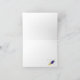 Un ciel bleu avec de petites étoiles. Une navette spatiale bleue avec des accents rouges et verts décollant dans l'espace. Une carte de remerciement amusante.