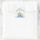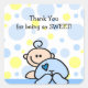 Bébé crawling mignon avec un pois bleu & jaune arrière - plan Merci Oh garçon autocollant. Invitations et timbres-poste correspondants disponibles ©jdsclipart