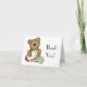 Il s'agit d'une petite carte mignonne avec un bébé ours tenant une biberon avec un hochet à ses pieds, dans les tons rose et vert pâle et bleu. Le texte dit "Merci !" et est personnalisable, l'intérieur de la carte à notes est vide et prêt à vous remplir de détails et de mots de remerciement !