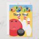 Ce carte de remerciements personnalisable d'anniversaire de bowling comporte plusieurs boules de bowling dans des couleurs lumineuses et des goupilles de bowling. Peut être customisé comme invitation de partie de bowling, un carte de remerciements de partie de bowling et plus.