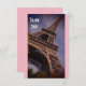 Une mini-carte de remerciements avec une photographie du célèbre monument européen - la Tour Eiffel prise à un angle vers le haut lui donnant une perspective intéressante. La photographie fournit un joli closeup de l'intéressant treillis métallique de la tour.