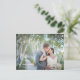 Mariage classique merci modèle de carte postale avec une photo sur le devant, et un message personnalisable à l'arrière. Vous pouvez le personnaliser avec le bouton customiser. Envoyez votre message de remerciement mariage à vos amis et à votre famille en utilisant cette carte postale de remerciement simple et magnifique avec les mots "merci" écrit dans un script d'écriture blanc superposé. *Conseil photo : pour vous assurer que vos photos téléchargées sont centrées, recadrez-les avant de les télécharger. Utilisez une taille de 4,25 po x 5,6 po pour la photo avant et une taille de carré pour la photo arrière. Cela permettra aux photos de remplir parfaitement l'espace lorsque vous "changez" les photos par défaut pour télécharger les vôtres.