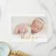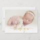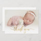 Simple Moderne Élégante Calligraphie Or Script Photo Nouveau-né Baby Merci Carte Faire-part de naissance. Dispose d'un beau texte "merci" dans un script de police de caractères de calligraphie swash tail manuscrit en feuille d'or FAUX. Message personnel préfabriqué à l'arrière. Idéal pour bébé fille ou bébé garçon. Facile à personnaliser avec votre photo bébé et les détails.