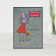 Un merci à tout photographe professionnel ou non. Mariage ou non. Une femme en robe rouge et chapeau rose avec nœud. Un énorme appareil photo et quelques fleurs au sol sous une image de cœurs sur le mur..