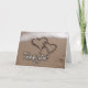 Merci en écriture blanche sur fond de plage de sable avec deux cœurs dessinés dans le sable. Parfait pour le couple de mariage à la plage pour leurs mots de remerciement.