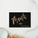 Créez une carte à plat personnalisée et splendide, chic, minimaliste et simple merci pour votre prochain mariage. Cette carte à plat de remerciement est dotée d'un script de calligraphie spacieux et magnifique, écrit en feuille d'or faux avec un arrière - plan noir tableau noir. Vous pouvez facilement le customiser avec votre propre texte et le customiser à votre goût. Remarque : l'illustration "Thank -You-" ne peut pas être modifiée. Remarque supplémentaire : L'impression de feuille d'or est un effet de feuille d'or. Ce n'est PAS la feuille d'or d'estampillage à chaud.