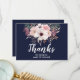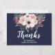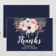 Carte de remerciement florale de campagne pour être ma demoiselle d'honneur avec écriture blanche moderne. Le recto et le verso de la carte sont en bleu marine chic.