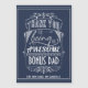 Parfait pour la Fête des pères, son anniversaire ou juste pour la raison. Cette carte élégante montre le message "Merci d'être un super Bonus Papa" - ou changer le nom pour convenir à votre beau-père. En bleu foncé et blanc, cette typographie design fait une carte magnétique moderne et attrayante.