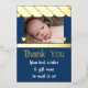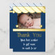 Merci pour les cadeaux pour notre nouveau bébé. Bleu foncé avec véritable feuille d'or. Dites merci pour les beaux cadeaux que vous avez reçus à la naissance de votre bébé. Remplacez la photo par la vôtre et ajoutez votre message. Conçu en bleu clair et foncé avec des coeurs d'amour et une véritable feuille d'or sur le devant.
