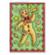 Conception de Noël avec illustration vintage représentant un bonhomme en pain d'épice soufflant dans une corne, tenant un bâton de bonbon et entouré de bonbons.