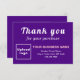 Carte de remerciements, l'un des documents de marketing d'entreprise pour apprécier l'achat de vos clients ou clients qui soutiennent votre entreprise. Le design de la carte est des textes rose et blanc sur arrière - plan violet. Le contenu est votre logo d'entreprise, votre nom d'entreprise ou de société, votre adresse, votre numéro de téléphone et merci pour vos textes d'achat. Veuillez vérifier l'apparence après avoir téléchargé le logo et tapé des textes. Si l'apparence vous plaît, vous pouvez passer votre commande maintenant. Si vous avez besoin de redimensionner et déplacer le logo et les textes pour s'adapter à ce carte de remerciements ou à d'autres tailles que vous choisirez, veuillez modifier l'outil de conception. Vous pouvez également effectuer d'autres modifications en fonction de vos préférences dans l'outil de conception, comme changer la couleur de la carte, la couleur de la police et le style de police. Dites merci à vos clients. Annoncez également votre entreprise. Faites la promotion de votre marque. Construisez la sensibilisation à la marque.