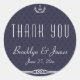 Autocollants de mariage nautique Merci rond avec ancre blanche et texte blanc personnalisé imprimé sur arrière - plan bleu marine avec motif d'ancre