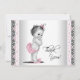 Petite fille carte de remerciements avec arrière - plan en dentelle rose et noire et adorable fille vintage portant des pantalons de rouffle, des pantoufles lapins roses et un arc rose dans ses cheveux. Ce carte de remerciements de fille rose et plat de style mignon est facilement customisé en ajoutant votre message dans le style de police, la taille et la couleur de police, et le libellé de votre choix, ou laissez vide pour ajouter votre message manuscrit après leur arrivée.