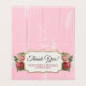Style de ferme shabby chic à son meilleur ! Élégant fond en bois rustique rose blush, grappes de roses illustrées de fleurs vintage, ruban de dentelle complexe et une touche de texture de toile de jute rendent ce design tout simplement charmant pour l'image de marque d'une boutique champêtre !