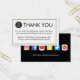 Ceci est un simple merci pour votre modèle de carte de visite de commande en noir et blanc. Sur le devant, vous avez la possibilité d'y insérer votre propre logo ainsi que des remerciements et d'autres détails de libellé. Le verso de la carte est l'endroit où vous mettez votre nom d'utilisateur des médias sociaux pour promouvoir votre entreprise. Omettez les icônes et les informations dont vous n'avez pas besoin. Fondamentalement, ce design de carte est pour l'appréciation du client; offrir des rabais à vos clients tout en faisant la promotion de votre marque.