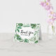 Cadre de conception de feuilles d'eau tropicale verte noir Merci de script noir du diplômé. À l'intérieur de la carte, des feuilles tropicaux coordonnés de couleur eau sont positionnés sur le dessus et le bas, vous donnant beaucoup de place pour vos notes de remerciement. Le dos est orné d'une feuille en forme de coeur avec personnalisable "Du bureau de..."