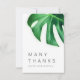 Cette carte de remerciements allie élégance moderne et charme tropical. La feuille de monstère verte vous fait canaliser ces vibes tropicales pour un mariage de destination ou un mariage à thème tropical.