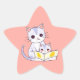 Dessin mignon d'une Mère Chat à lire à son chaton, qui est assis sur ses genoux avec un arrière - plan rose pastel. Ces autocollants en forme d'étoile sont de 1-1/2" x 1-1/2" avec 20 autocollants par feuille. Peut être commandé avec un fini brillant (brillant) ou un fini mat plat (pas aussi brillant). Elles sont imprimées sur du papier blanc sans acide, parfait pour le scrapbooking. Avant résistant aux rayures avec dossier facile à peler et à coller. Idéal aussi pour les enveloppes !