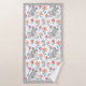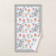 Mignonne mère de souris grise avec deux bébés, fleurs motif et la frontière grise serviettes de bain de la fête des mères. Un joli motif d'une mignonne souris grise avec deux bébés, des fleurs rouges et coralliennes et des bordures grises ornent cet ensemble de serviettes de bain.