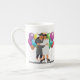 jolie porcelaine, bonne dimension effet brillant bien dans l'ensemble. Le motif et les couleurs sont réussis.Je trouve néanmoins dommage de ne pas occuper tout l'espace avc le motif car la partie rouge au dos de la tasse est trop présente et pas intéressante visuellement.