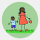 La famille montre la mère et le fils tenant la main. La robe de la femme dit "maman" et la chemise du petit garçon dit "moi". Les parents et les enfants ont les cheveux noirs et la peau foncée. Cette photo de famille Mommy and Me est également présentée dans plusieurs options de famille ethnique, y compris un simple dessin de ligne. Personnalisez les autocollants de famille avec des noms de famille ou un message personnel pour un cadeau spécial de la mère ou de la mère et de la fille! Vous pouvez fabriquer des autocollants personnalisés pour un cadeau spécial de la Fête des Mères, une nouvelle maman et/ou un nouveau bébé, une réunion de famille ou d'autres cadeaux d'art familial customisés!