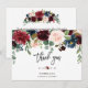 Conception de carte élégante avec de magnifiques bouquets de fleurs aquarelles merlot et bleues marine, diviseur floral, belle écriture manuscrite "merci" et polices spéciales. Cela pourrait être un excellent choix pour un mariage de toutes saisons, en particulier pour les mariages d'automne et d'hiver. Utilisez l'outil de personnalisation pour ajouter vos informations et apporter des modifications. Pour les articles assortis, veuillez visiter ma collection florale Merlot et Bleu Marine.