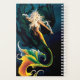 Une sirène aux cheveux blancs avec un dragon vert foncé ensemble dans l'océan