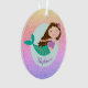 Cet ornement de sirènes personnalisées présente un design mignon de sirène avec une parties scintillant arc-en-ciel imitation. Le design est le même des deux côtés de l'ornement. Personnalisez-le avec un nom.