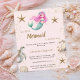 Celebrate your little mermaid on the way with this adorable Under the Sea baby shower invitation, featuring a sweet watercolor mermaid surrounded by a turtle, crab, seashell, starfish, and bubbles.
