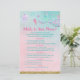 Ces élégantes cartes What's In Your Phone sont une excellente façon de lancer le plaisir à votre Baby shower et garanti d'être un grand succès! Il vous suffit de les faire circuler pendant le Baby shower où vous pourrez vous amuser en passant par leur téléphone et en lisant les articles qu'ils ont dans la liste. La personne qui a le plus de points gagne ! Le design est orné d'une queue de sirène colorée avec des ornements de parties scintillant en faux or.