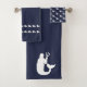 Merman avec requins tigres Salle de bain bleu océan et blanc serviette design par Sandy Closs