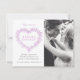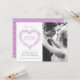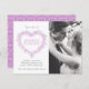 Mistletoe botanique en ligne d'art coeur courroie dessinant violet et blanc joyeusement marié carte de Noël avec votre propre photo sur un côté. Personnalisez avec votre propre invitation de message à une fête ou un événement post-mariage, les noms, et votre photo. Idéal pour envoyer un peu d'amour comme mistletoe est un symbole d'amour et a des associations avec la vitalité et une bonne santé. Dessin et dessin de ligne d'origine par Sarah Trett pour www.mylittleedenweddings.com seulement sur Zazzle.
