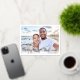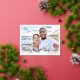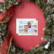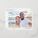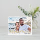 Partagez votre photo de vacances préférée sur la plage avec cette carte photo moderne et amusante de Noël sur la plage, qui présente une superposition typographique en lettrage à la main et qui dit "Joyeux Noël de plage" décorée de vagues, de soleil et d'illustrations de planches de surf. Facilement personnalisable avec l'une de vos photos de vacances préférées et vos noms. Le dos de la carte est muni d'un motif à vague en bleu et blanc.