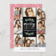 Carte photo de vacances élégant et festif qui présente une typographie empilée qui dit : "Joyeux Noël et heureux nouvel an." Personnalisez avec vos propres photos et texte. Doté de nos lauriers d'aquarelle peints à la main avec des baies rouges. Un motif geo rouge branché sur le dos apporte une touche spéciale.